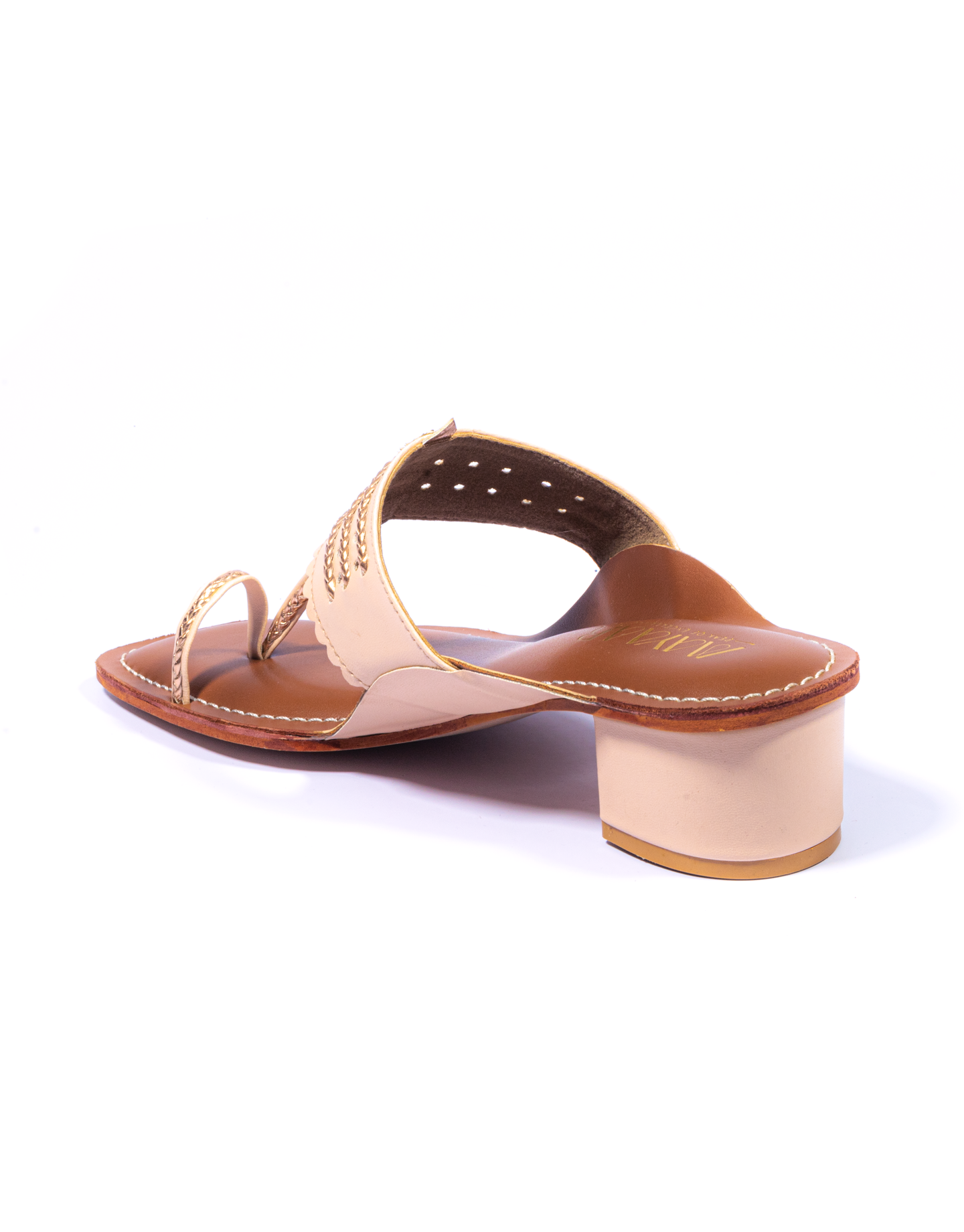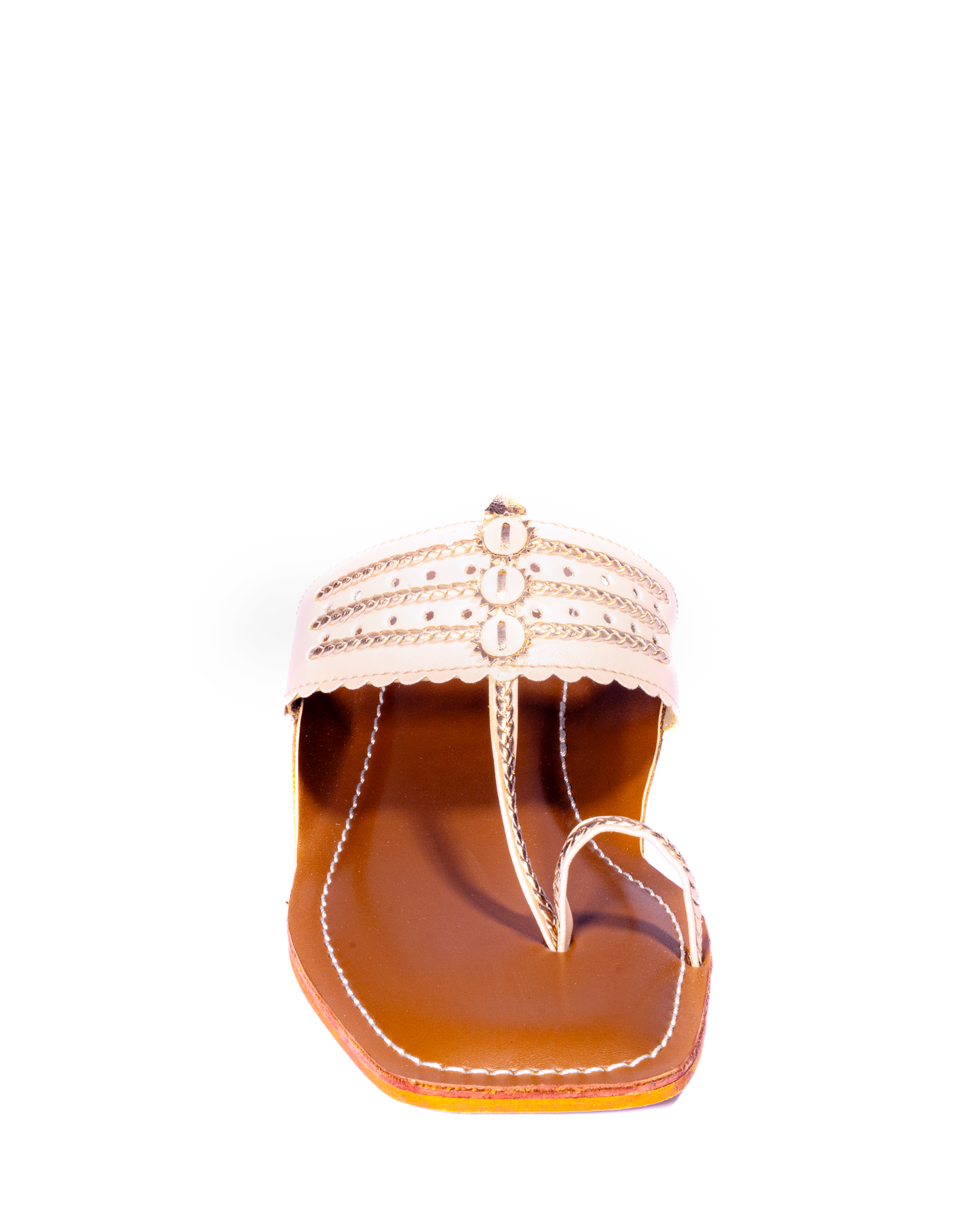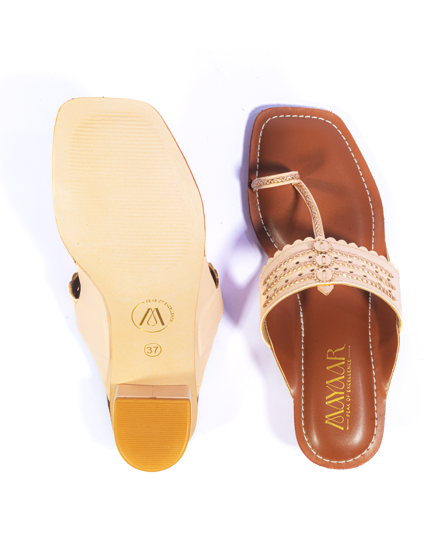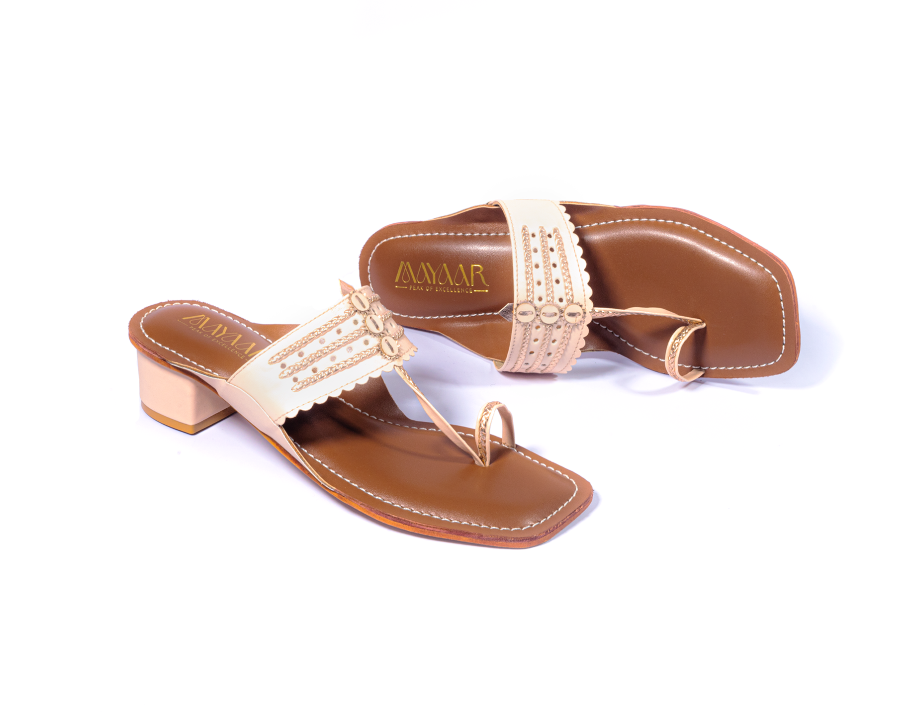 Step into elegance with our Silver Grace Heeled Kolhapuri, a timeless blend of ethnic tradition and modern flair. Designed with a metallic silver upper, intricate hand-stitched detailing, and a floral embellishment, this sandal adds a sophisticated sparkle to any outfit. The low block heel offers just the right lift for comfort and style, while the tan footbed brings contrast and richness to the overall design. Ideal for festive occasions, casual ethnic wear, or special gatherings.