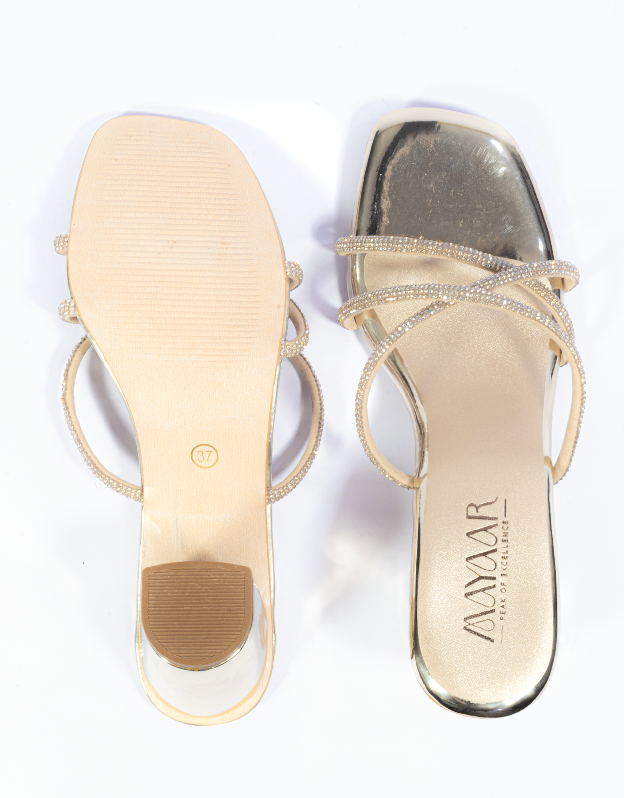 Shimmery Cross Strap Diamond Upper Block Heel