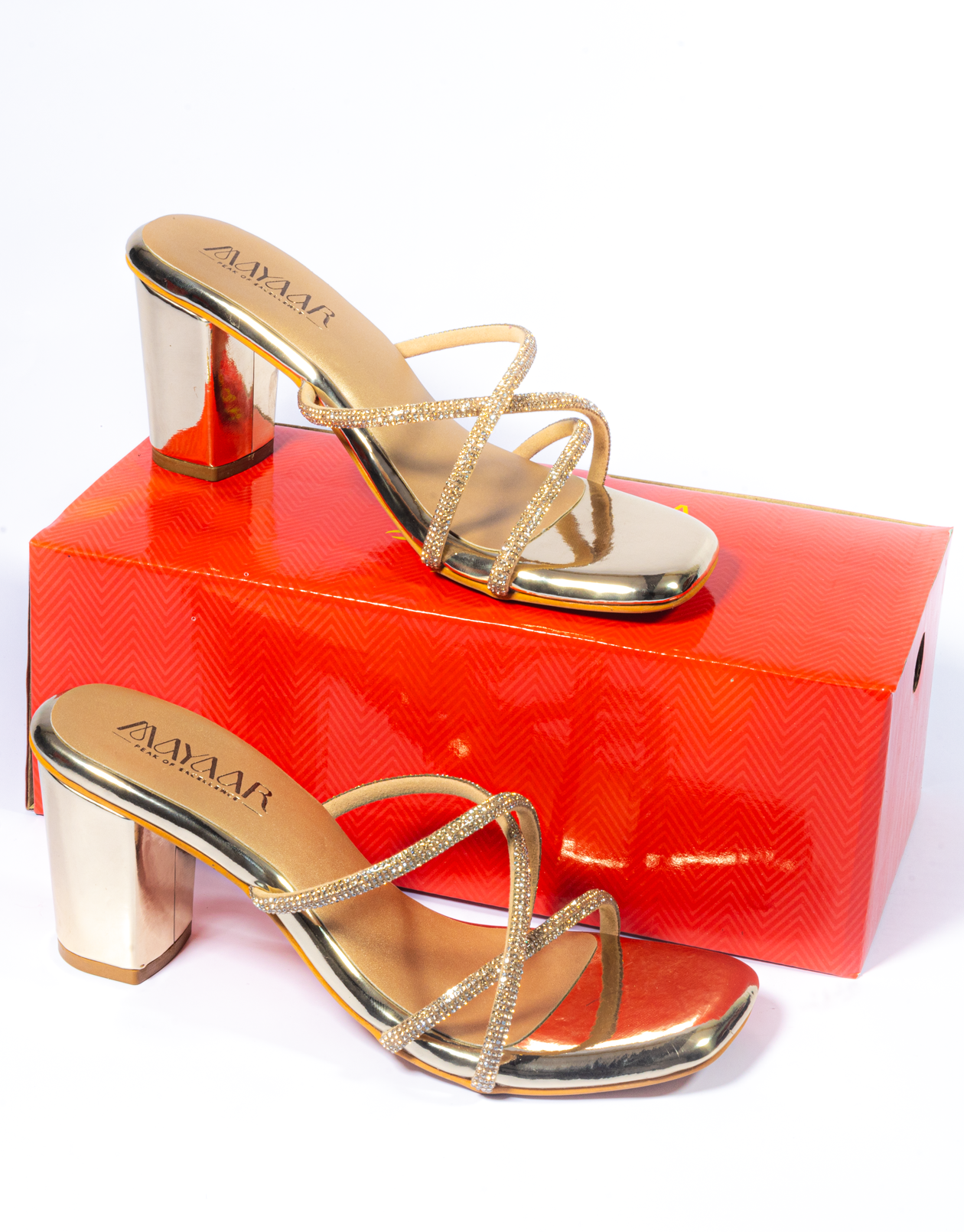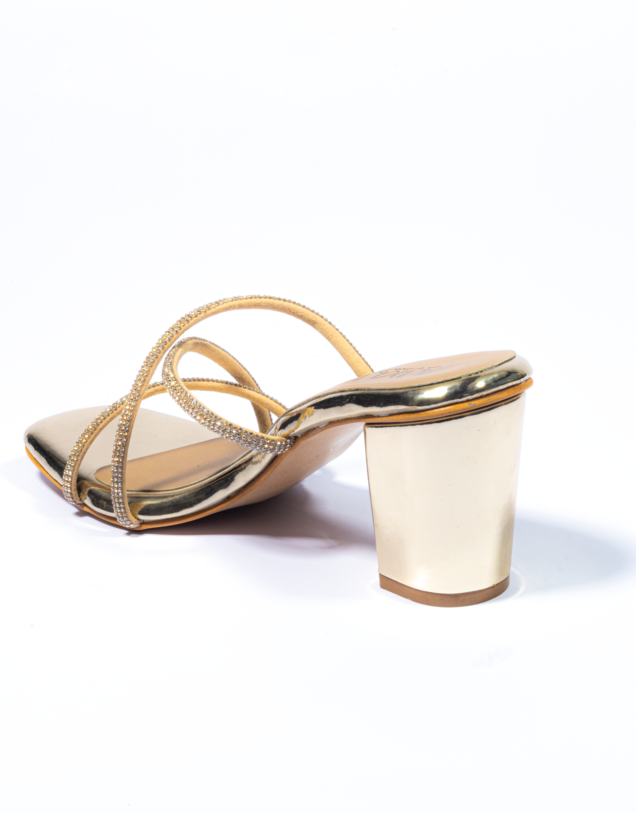Shimmery Cross Strap Diamond Upper Block HeelShimmery Cross Strap Diamond Upper Block Heel